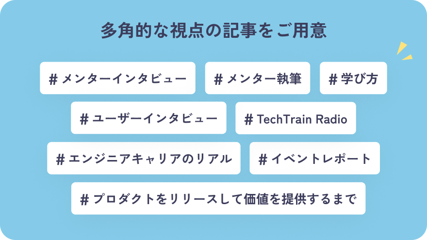 技術記事だけでなく、キャリア形成のヒント、効果的な学習方法、エンジニアへのインタビュー記事など、多角的な視点からあなたの成長をサポートします。